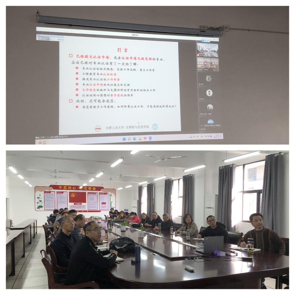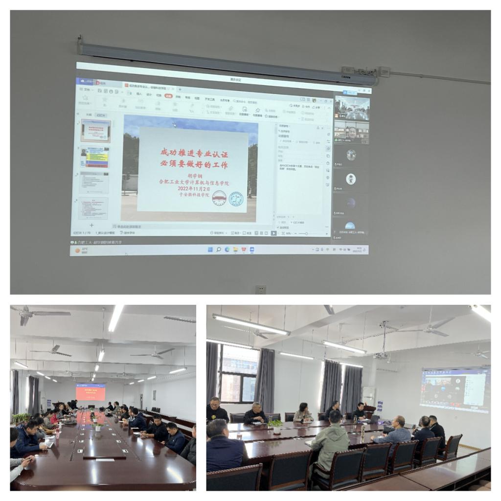 为进一步推进计算机科学与技术专业专业认证工作,11月2日下午,信息与网络工程学院在尚行楼B418召开专业认证报告会,会议邀请安徽省高校计算机教育研究会理事长、合肥工业大学胡学钢教授做“成功推进专业认证必须要做好的工作”的报告,信息与网络工程学院全体教师参加了会议,会议由院长余宏杰主持。