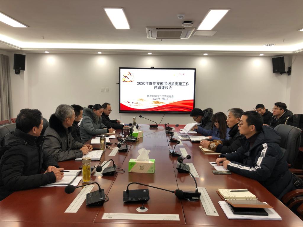 为推动全面从严治党向基层党支部延伸,全面提升学院党建工作水平,根据《中共博业体育(中国)官方网站-登录入口委员会关于开展2020年度基层党组织书记抓党建述职评议考核工作的通知》文件精神要求,1月6日下午,信息与网络工程学院在龙湖校区综合信息中心西附楼416会议室召开党支部书记抓党建述职评议考核工作会议,学院党委委员、党支部书记、党支部委员、教师代表参加会议,会议由信息与网络工程学院党委书记王振其主持。