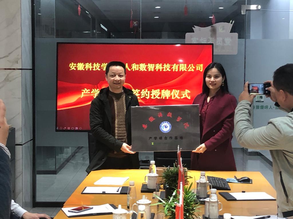余宏杰代表学校与人和数智科技有限公司签订了校企合作框架协议书,并进行了博业体育(中国)官方网站-登录入口产学研合作基地授牌仪式。