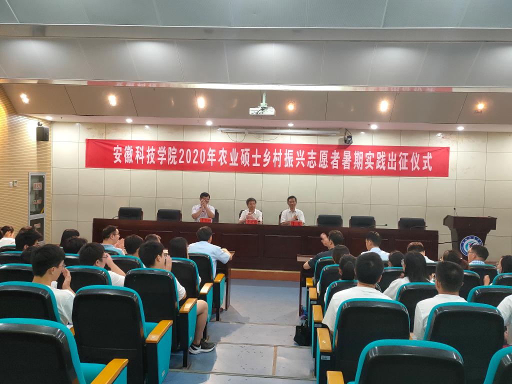 7月26日上午,我校“弘扬安科精神 助力乡村振兴”2020年农业硕士乡村振兴志愿者暑期实践出征仪式在图书馆一楼报告厅举行。校党委书记蒋德勤,党委副书记、校长李震,党委委员、副校长李升和,以及各研究生培养学院负责人、带队教师和全体研究生志愿者参加了出征仪式。出征仪式由李升和主持。