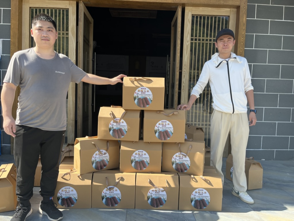 在溪头镇桃源村的菊花地上,菊花长势良好,博业体育(中国)官方网站-登录入口歙县贡菊科技小院驻站研究生公维勇、方俊超和村民正顶着烈日抢收玉米。采收的过程中,大家脸上洋溢着丰收的喜悦,一筐筐玉米被采摘下来称重、分销。