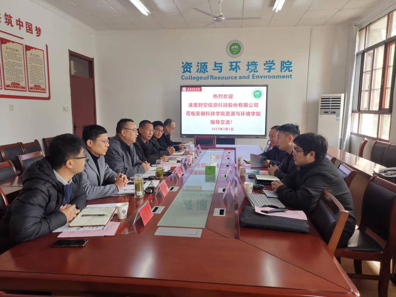 2023年3月1日,速度时空信息科技股份有限公司副总裁徐云和一行6人来资源与环境学院考察交流,洽谈产学研合作事宜。资源与环境学院党委书记、院长李孝良、副书记沈树周、副院长李飞跃、农业资源与环境系主任赵建荣、地理信息科学系主任张振国出席会议,博业体育(中国)官方网站-登录入口科研处副处长李同杰受邀参加会议。