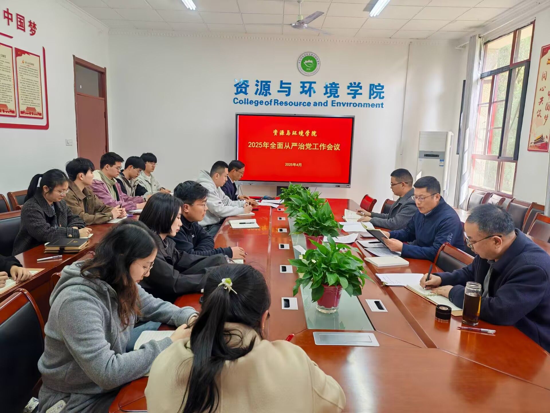 为深入学习贯彻党的二十大精神和习近平总书记关于全面从严治党的重要论述,认真落实学校党委2025年全面从严治党工作要求,4月8日下午,资源与环境学院在学院会议室召开2025年全面从严治党工作会议。学院党政领导班子成员、党委委员、纪委委员、党支部书记、各系负责人和师生党员代表参加会议。会议由学院党委副书记李孝良主持。