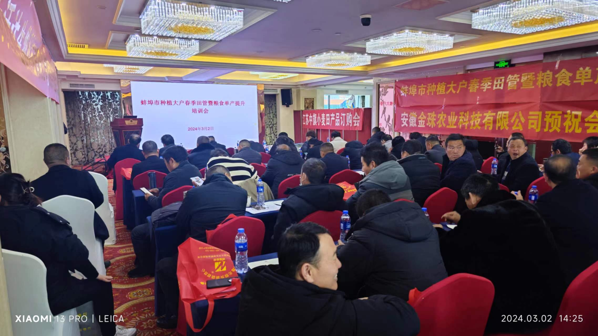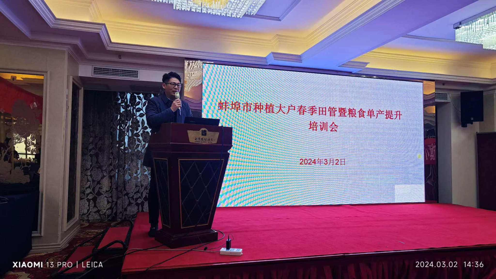 为了进一步彰显蚌埠市农学会的科技引领和社会服务作用,响应国家和安徽省对粮食单产提升的要求,针对今年春季雨雪低温冰冻天气的不利影响,指导农户开展春季田管,蚌埠市农学会于3月2日在蚌埠市举办种植大户春季田管暨粮食单产提升培训会,蚌埠市农业农村局党组成员、总农艺师赵入德,安徽省植保总站防治科科长邱坤,蚌埠市农业技术推广中心主任孙善军,蚌埠市农商银行党委书记、董事长赵静雅,国元保险蚌埠中支委员、总经理助理张克以及蚌埠市种植大户100余人参加了培训会,会议由蚌埠市农学会理事长、博业体育(中国)官方网站-登录入口资源与环境学院院长李孝良主持。