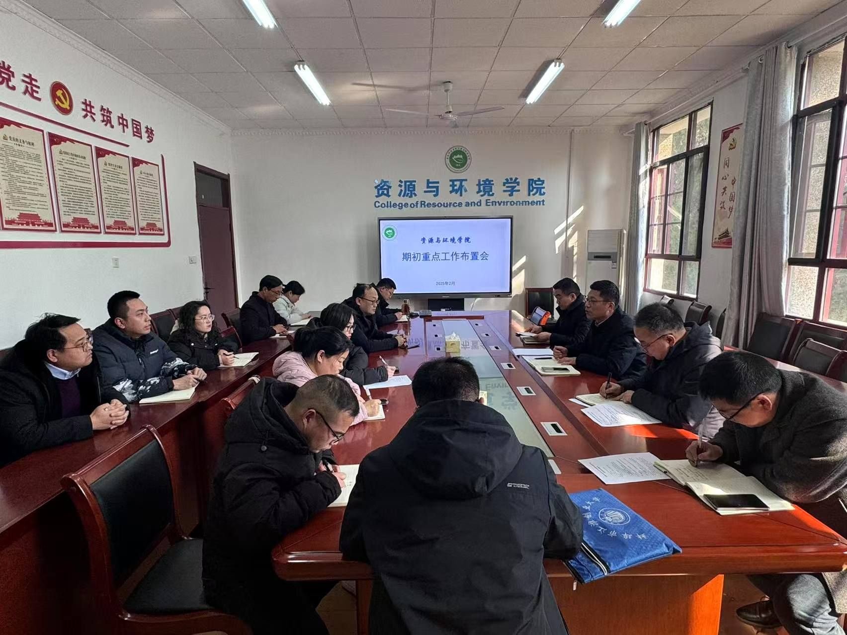 2月19日下午,资源与环境学院于学院会议室召开期初重点工作布置会,全面部署新学期各项重点工作任务,确保全年工作开好局、起好步。学院党政领导、各系主任、实验室主任、支部书记参加会议。会议由学院党委书记沈树周主持。