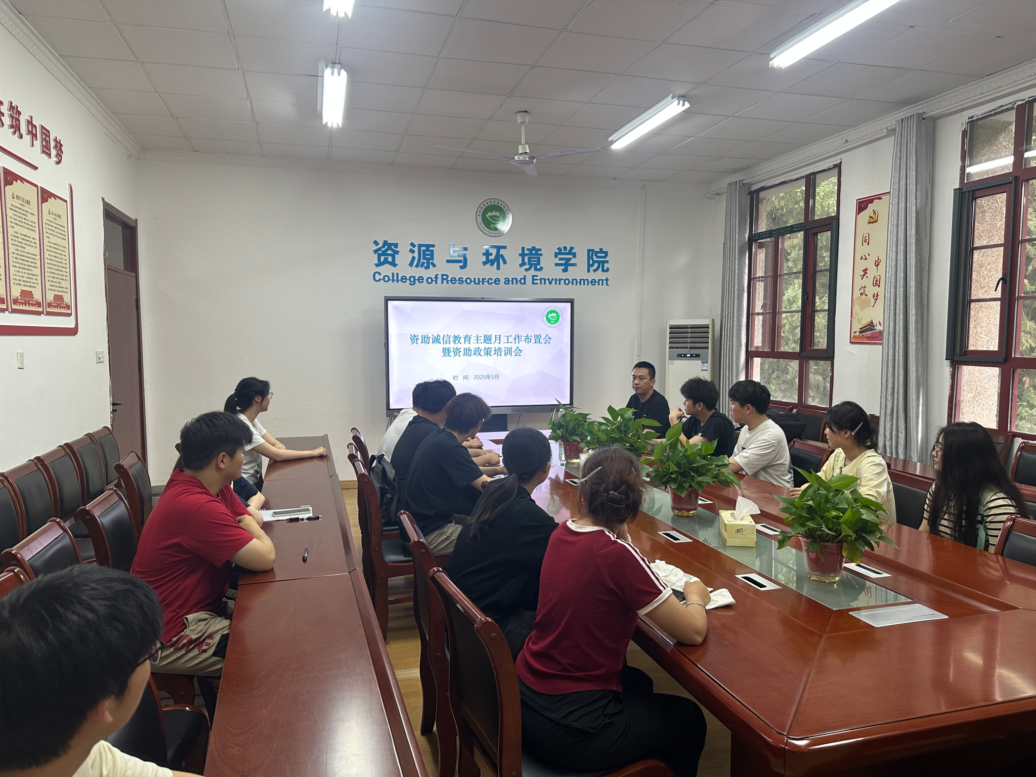 5月21日晚,资源与环境学院召开资助诚信教育主题月工作布置会暨资助政策培训会,非毕业班资助委员参加本次会议。会议由资助工作负责老师孙正浩主持。