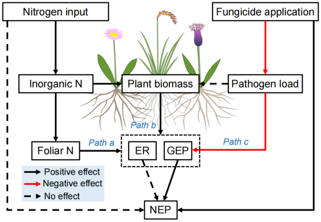Fuwei Wang, Xuebin Yan, Mengqian Wang et al. Foliar fungal pathogen inhibition increases ecosystem carbon sequestration independently of nitrogen enrichment in a Tibetan alpine meadow. DOI: 10.1111/1365-2745.70047 (特约通讯员:王华雪 审核:沈树周)