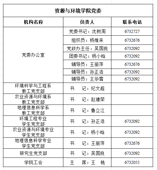 资源与环境学院机构设置一览表