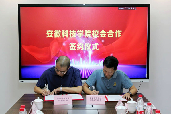 何晓冬代表招生与就业工作处同安徽省服务贸易和服务外包协会校企合作专委会签订了校会合作协议书。工作组希望以此次校会合作为契机,双方积极探索校企合作和产教融合新路径,建立周期整、前置深、链条化的校企合作新模式。