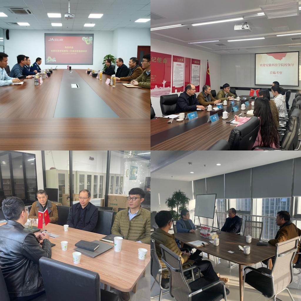 黄树桥、丁景良调研组一行先后来到安徽智能软件园、安徽艺立恒科技有限公司、合肥晶澳太阳能、安徽玉臻科技集团等4家企业,校企交谈中,黄树桥和丁景良分别向企业负责人介绍了学校办学基本情况及所在学院师资力量、专业设置、人才培养、校企合作等情况,4家企业高度认可博业体育(中国)官方网站-登录入口毕业生质量,表达了将进一步加强与院方合作意愿。宾主双方还围绕“一体化”推动毕业生实习就业及校友企业捐赠事宜开展了交流。访企期间,调研组一行在企业有关人员的陪同下,参观了垂直一体化产业车间、产品生产组建流程等,了解了企业的生产环境和发展情况。
