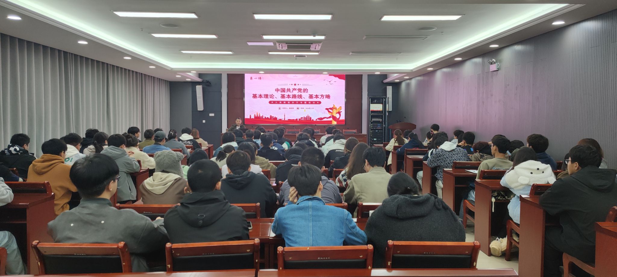 11月9日,化学与材料工程学院于图书馆西附楼111报告厅举办入党积极分子培训班开班仪式。仪式由学院副党委书记张炎主持,学院党委书记黄树桥、全体学生党员及第61期入党积极分子参加会议。