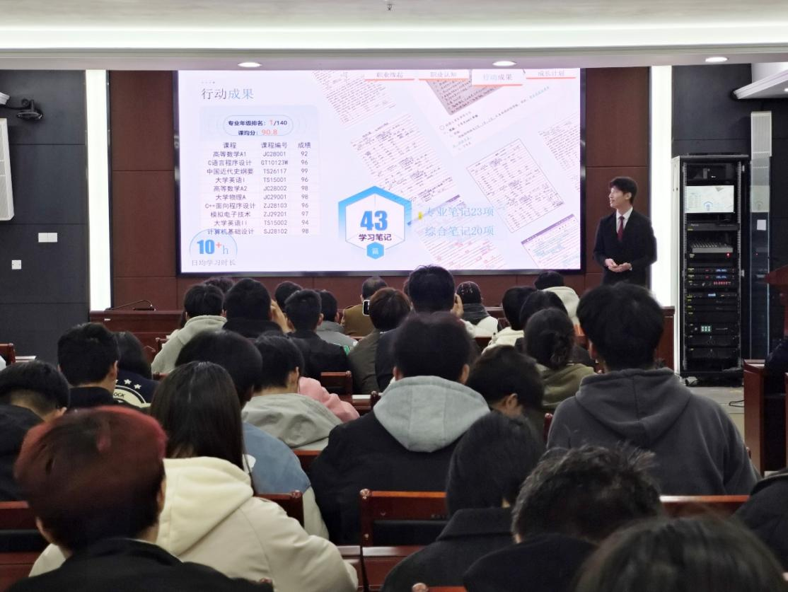 比赛现场的气氛紧张而热烈。每一位选手都怀揣着对未来的憧憬和期待,在舞台上尽情展现着自己的风采。他们身着正装、意气风发,通过精彩的PPT 展示和生动的演讲,阐述了自己对未来职业和发展的规划和憧憬。经过激烈的角逐,来自应用化学233班的夏俊杰和应用化学223班的郑宇彤分获成长赛道和就业赛道一等奖。选手们的精彩表现也赢得了现场观众们的阵阵掌声。同学们纷纷表示自己从选手们的职业规划中得到了很多启发,更加明确了自己的职业方向,也认识到只有不断努力才能实现自己的职业梦想。