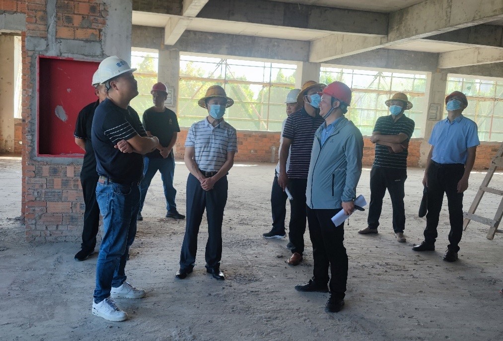 蒋德勤来到实验实训综合楼A项目施工现场,实地走访检查施工安全生产和工程进度情况,仔细察看施工细节,询问工程进展,详细了解工程实施中存在的困难,并向工地现场的参建各方表示慰问和感谢。蒋德勤对工程项目的总体情况表示肯定,他要求各参建单位要进一步提高认识,严把质量关和安全关,坚持质量为本、安全第一,确保工程质量和施工安全。