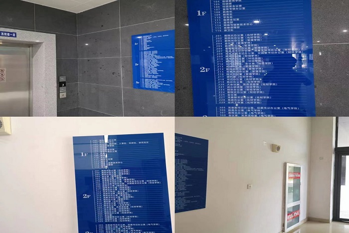 近日,龙湖校区图书馆西辅楼一楼大厅新增的两块办公区指示牌引起了笔者的注意,指示牌标注了从一楼到三楼所有正在投入使用的办公门牌号及对应的部门、院系室,大大方便了师生及校外来访者精准找到相应的办公场所。
