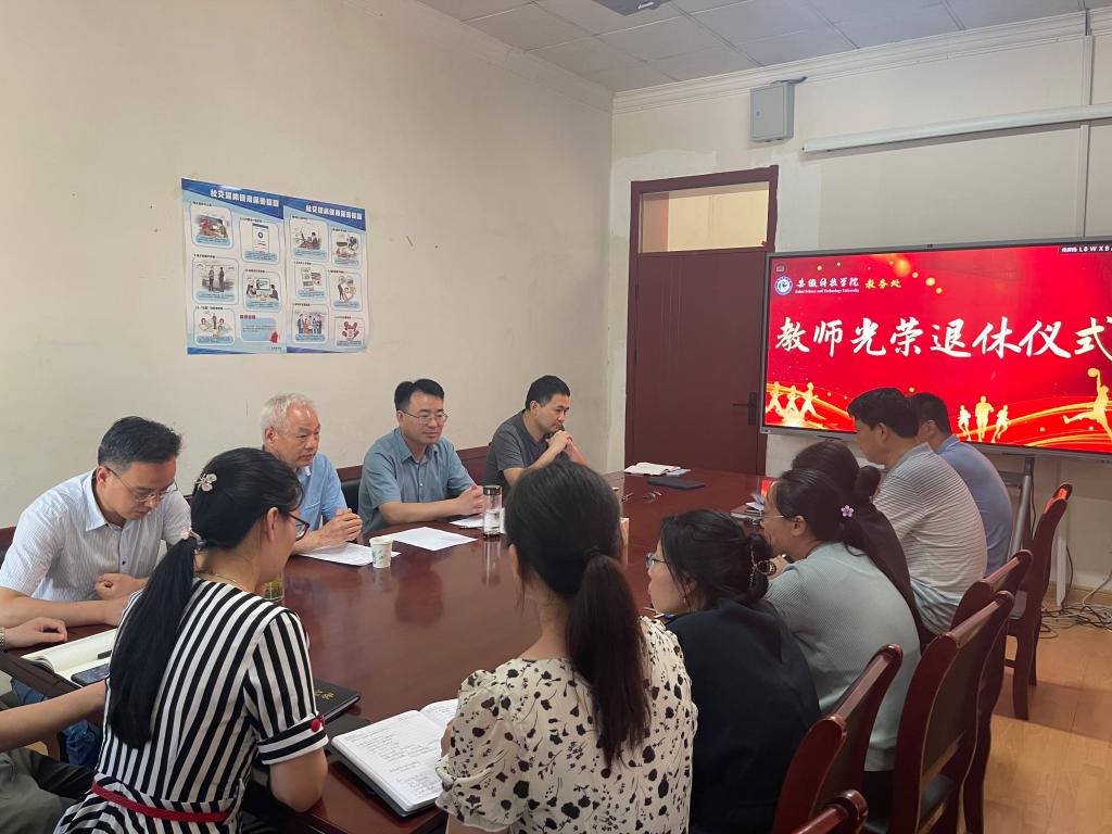 6月30日下午,教务处在处会议室为戚邦华同志举行了荣退仪式。教务处处长赵伟峰,副处长周金星、朱鹏程,机关四分工会主席李宝春,教务处科级以上干部参加了本次仪式。仪式由朱鹏程主持。