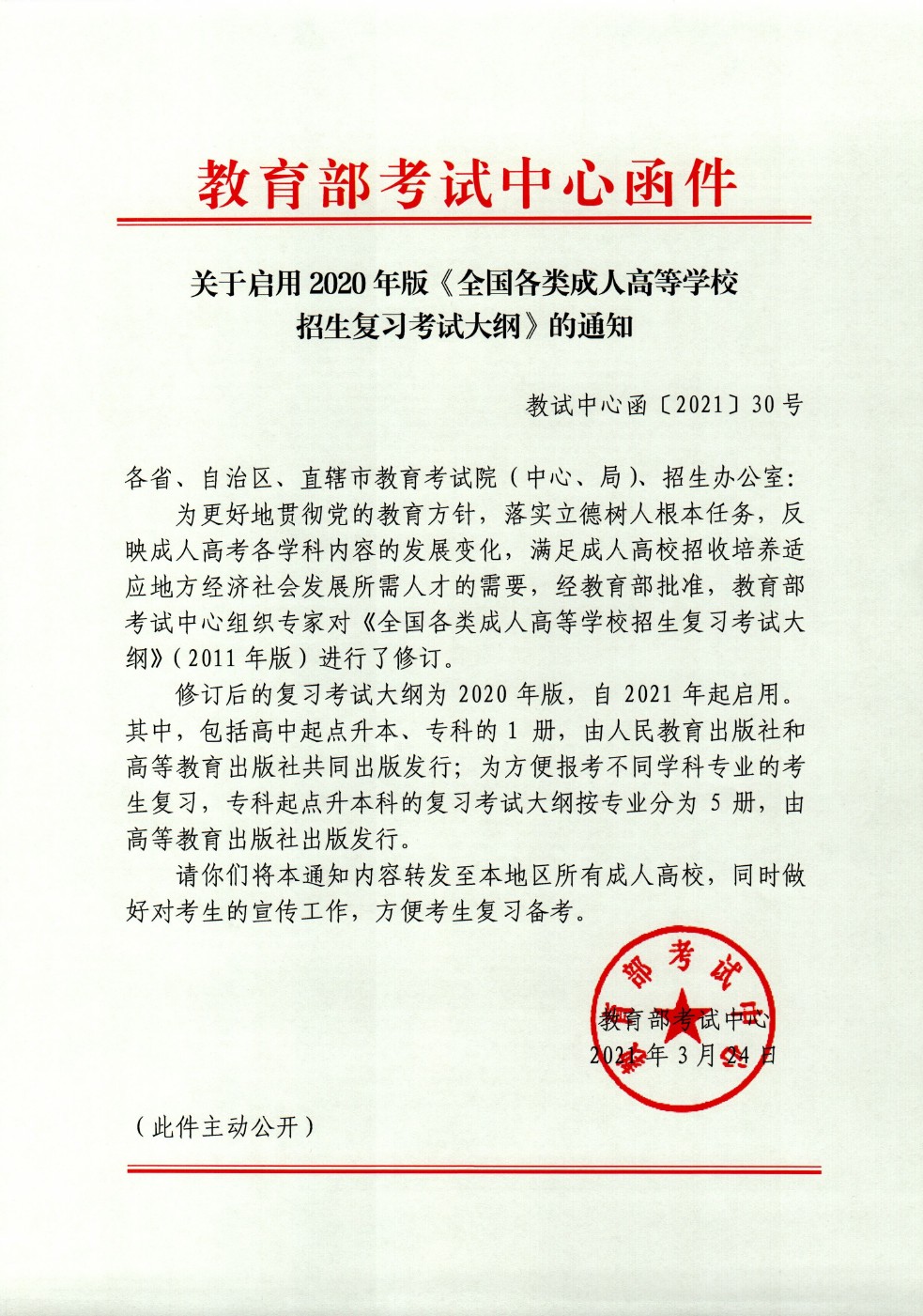 关于启用2020年版《全国各类成人高等学校招生复习考试大纲》的通知