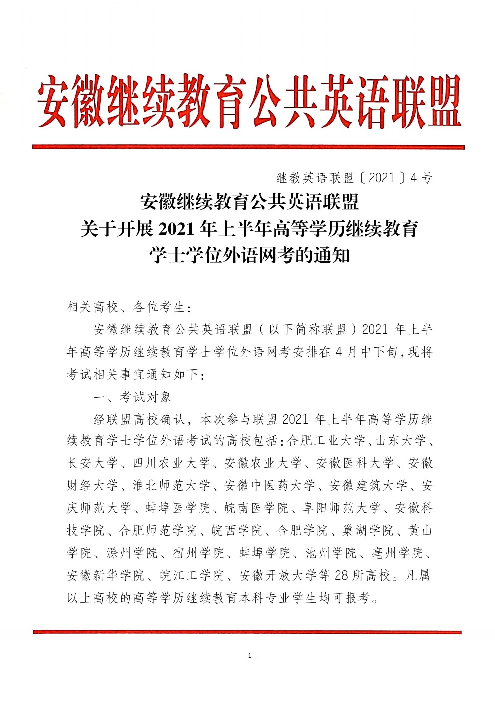 关于开展2021年上半年高等学历继续教育学士学位外语网考的通知