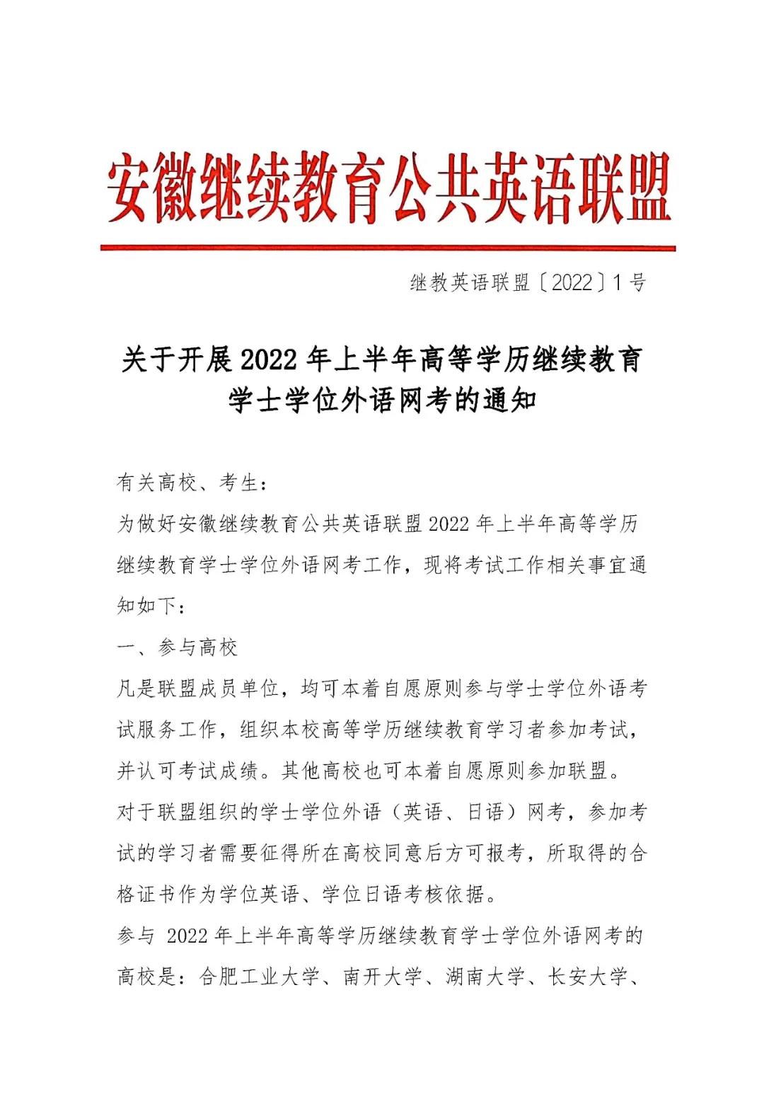 关于开展2022年上半年高等学历继续教育学士学位外语网考的通知