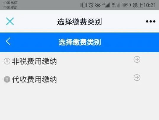 2.选择缴费类别,点击“非税费用缴纳”图标