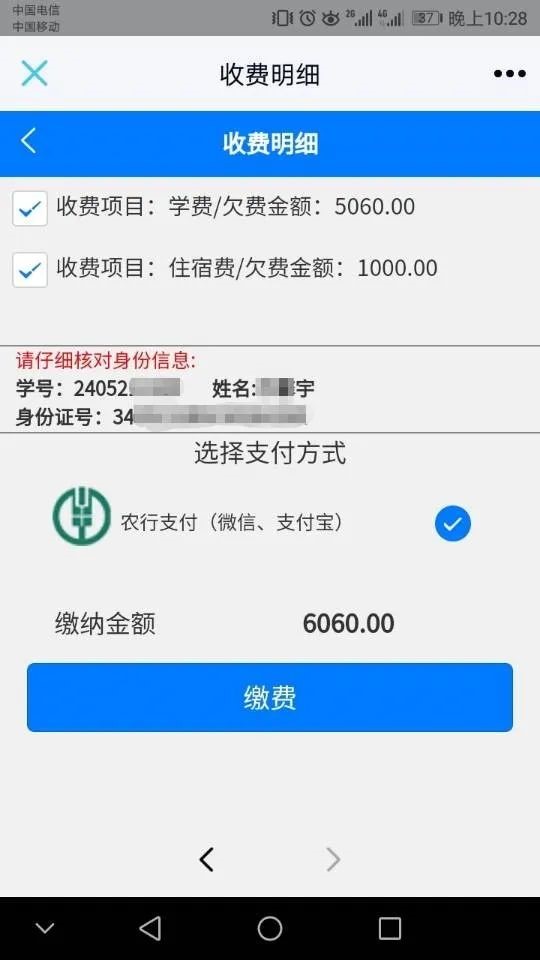 4.点击缴费,跳转到微信支付页面(目前仅支持微信支付)