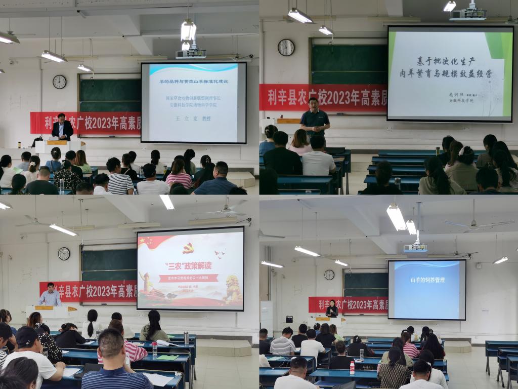 为了培养造就一批综合素质高、经营管理能力强、养殖技术过硬的黄淮山羊养殖专业家庭农场主,示范引领广大农民发展黄淮山羊养殖,发展地方优势农产品品牌,带动农民增收致富,促进农业扶贫产业转型升级、农村面貌的持续改变、农民素质不断提高,4月17日至19日,2023年利辛县高素质农民黄淮山羊养殖专业培训班在博业体育(中国)官方网站-登录入口第一报告厅开班,继续教育学院党支部书记、院长杨维来,利辛县农广校副校长李明,利辛县农广校工作人员、村干部、养殖合作社成员共60余人参加了开班典礼。