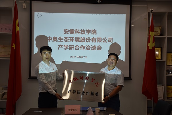 8月8日下午,我校与中奥生态环境股份有限公司签订产学研协议。科研处副处长李同杰,保卫处副处长邵传雷,建筑学院院长张远兵、副院长张伟;中奥生态环境股份有限公司总经理吴鲁皖、副总经理步立生和相关人员参加仪式。仪式由张伟主持。
