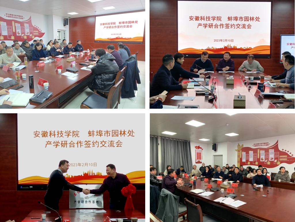 2月10日下午,我校与蚌埠市园林管理处签订产学研协议。建筑学院院长张远兵、副院长吴伟东、副院长张伟、教学秘书马露、风景园林博士赵坤坤;蚌埠市园林管理处党委书记赵超、党委委员徐伟;蚌山区住建交通局副局长刘明、蚌埠市园林工程有限公司总经理刘军和相关人员参加仪式。仪式由徐伟主持。