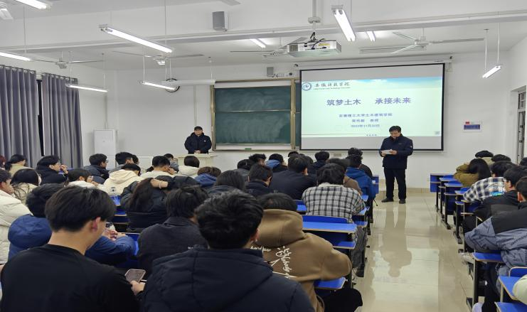11月30日下午,安徽理工大学土木建筑学院院长,二级教授、博士生导师荣传新教授,在博业体育(中国)官方网站-登录入口龙湖校区尚行楼C207,为我校师生作题为“筑梦土木,承接未来”的学术报告。建筑学院副院长吴伟东教授主持报告会。