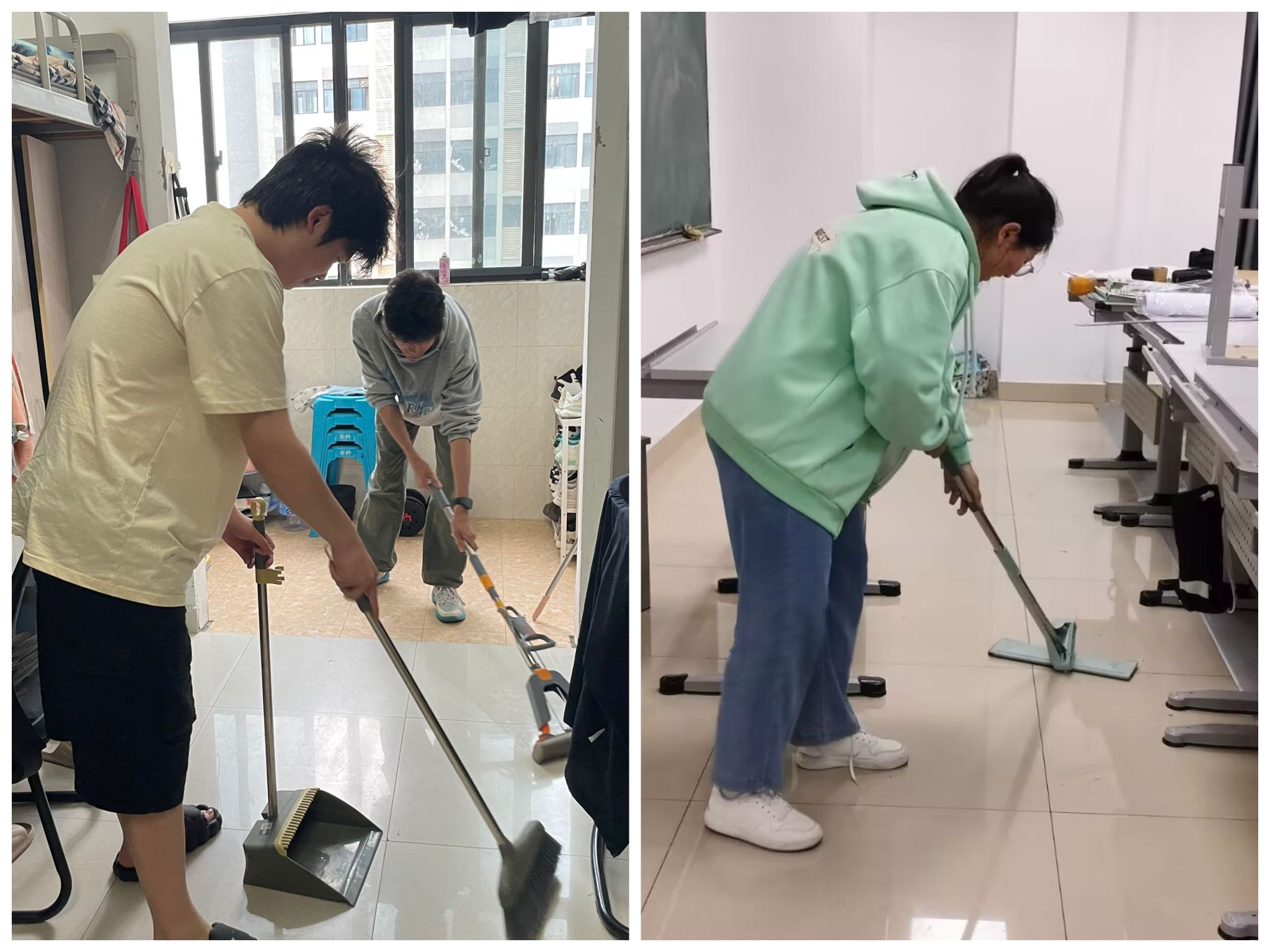 为引导学生“自己的事情自己做、自己的地盘自己管”,养成良好的个人生活习惯,5月8日-11日学院各班级开展宿舍、专业教室卫生大清扫。各班级同学分工负责,团结协作,为宿舍、专业教室消毒通风、清理垃圾、归整物品,共同维护宿舍、专教卫生干净整洁、环境氛围文明向上,让劳动教育成为一种生活养成教育。
