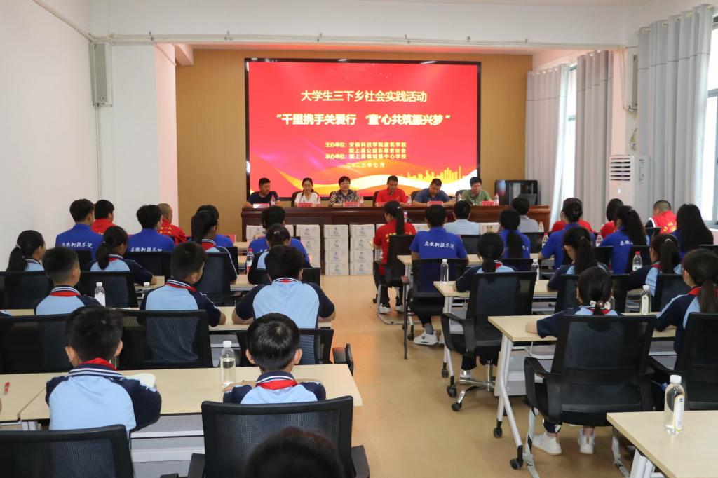 为深入学习贯彻习近平新时代中国特色社会主义思想,强化在实践中受教育、长才干、做贡献,7月15日上午,由博业体育(中国)官方网站-登录入口建筑学院和颍上县公益志愿者协会主办,颍上县慎城镇中心学校承办的“千里携手关爱行,‘童’心共筑振兴梦”暑期社会实践启动仪式如期举行。建筑学院党委副书记谢宜勤、团委书记沈德艳、团委副书记武辉一行三人前往参加。启动仪式由颍上县公益志愿者协会会长、“中国好人”获得者汤锋主持。