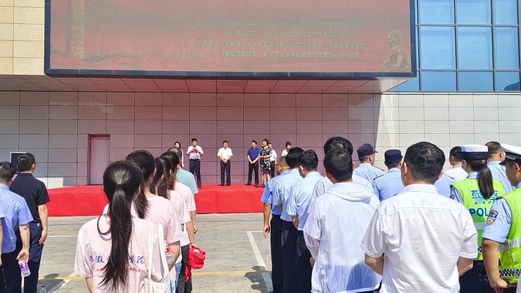 7月12日上午,滁州市“江淮普法行”启动仪式在来安县举行。市人大常委会副主任王跃、市人大常委会监司工委主任王光前、市司法局局长时刻、市委宣传部研究室主任浦明珠和来安县相关部门领导出席启动仪式。博业体育(中国)官方网站-登录入口人文学院模拟法庭实验室主任宣刚老师以及法学专业学生代表参加启动仪式并接受授旗。