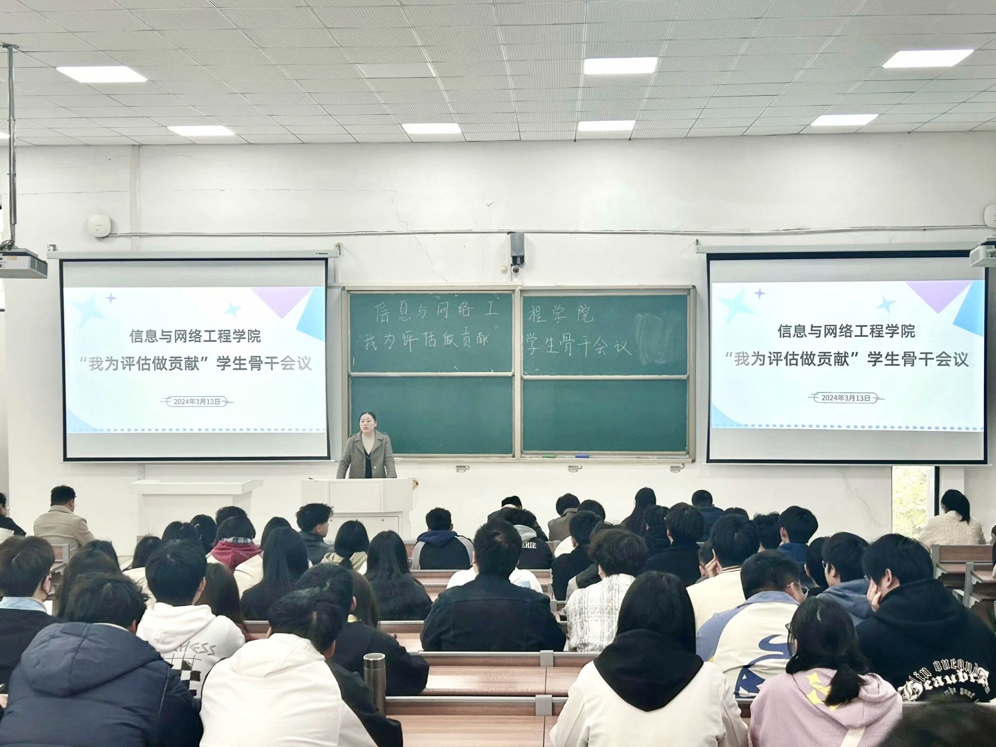 为进一步深化审核评估学习宣传,营造“人人参与评估、人人知晓评估、人人为评估作贡献”的氛围,3月13日下午,信息与网络工程学院在致知楼B111召开“我为评估作贡献” 学生骨干会议。全体辅导员、学生党员、各学生组织学生干部、班级主要学生干部出席会议,会议由学院党委副书记韦乃学主持。