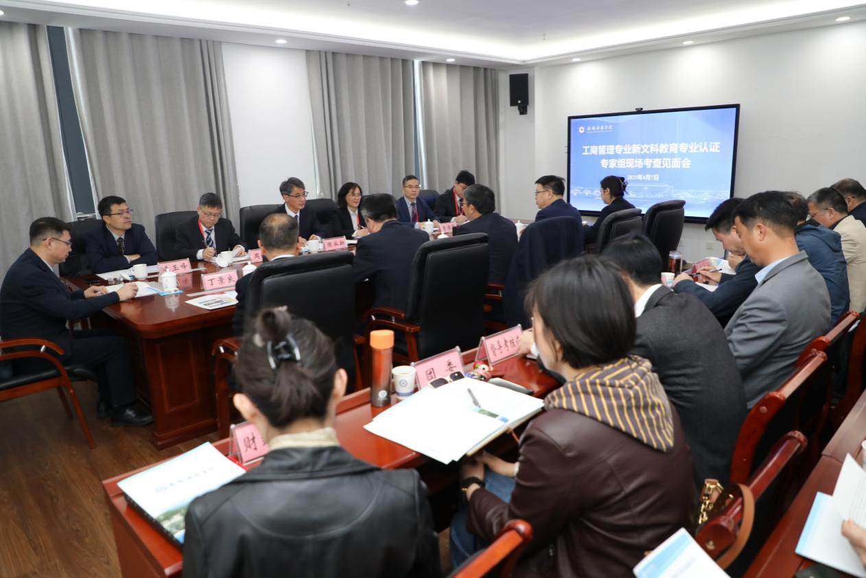 李升和对各位专家的到来表示热烈欢迎,介绍了学校的基本情况以及工商管理专业建设成效。陈业新介绍了专家组成员和此次新文科教育专业认证的目的、意义、考查的形式和工作重点。工商管理专业负责人程业炳汇报了专业基本情况和专业特色与优势。专家组结合认证标准就自评报告有关问题进行了现场提问,相关职能部门和学院负责人及专业负责人就专家组的提问进行了解答。