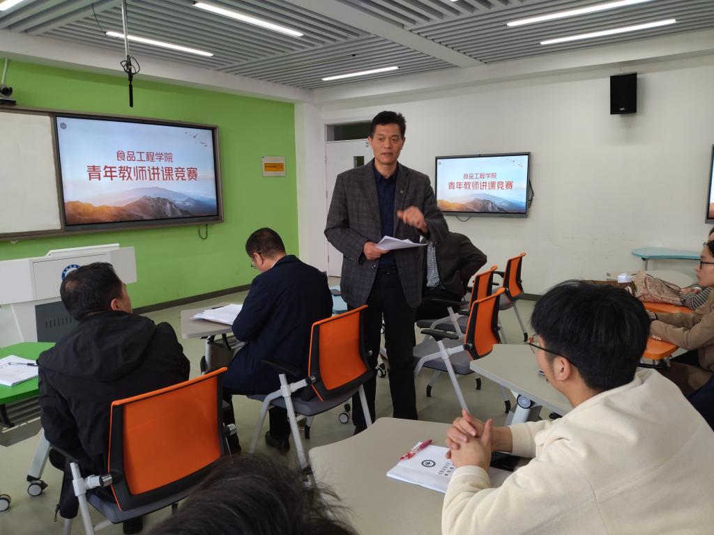 为进一步推动教师教学能力的提高,同时做好学校教学竞赛参赛教师的选拔工作,食品工程学院于4月10日下午在求知楼B303教室举行了青年教师教学竞赛,学院党委书记付光玺、院长杜传来、副院长郑海波出席本次活动。