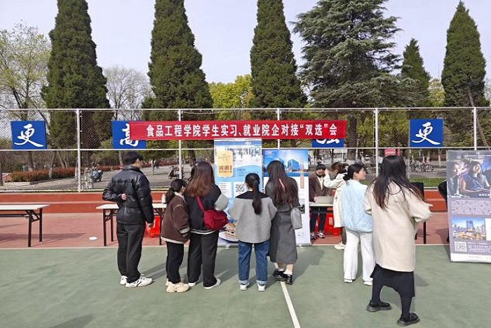 为助力毕业生高质量就业,3月25日上午,食品工程学院于东区篮球场举办学生实习、就业院企对接双选会。学院全体毕业生、2020级本科生参与本次双选会。