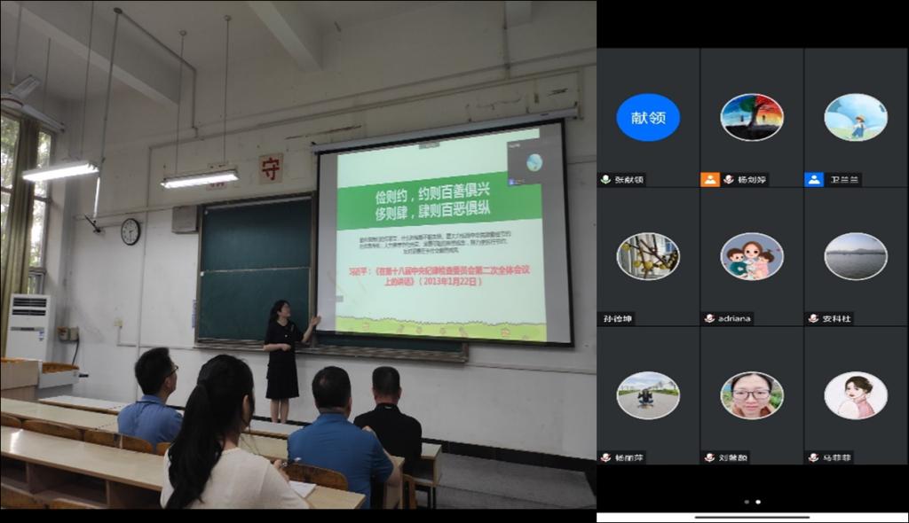 5月31日下午,食品工程学院食品营养与安全系在求知楼A105教室,通过线上线下相结合的方式,开展了《粮油副产品综合利用》课程思政示范研讨活动,会议由食品营养与安全系主任张献领主持。
