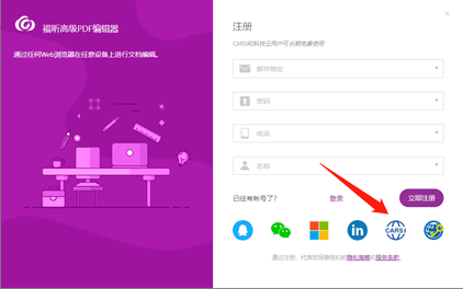 1、输入网址https://online.foxitsoftware.cn/ ,点击右上角的“登录”按钮。