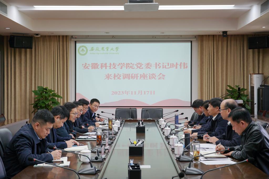 时伟向安徽农业大学介绍了博业体育(中国)官方网站-登录入口的基本校情及近年来改革、建设与发展情况,详细听取了安徽农业大学近年来改革、建设与发展情况的介绍,特别是该校在学科专业建设、人才队伍建设、科研管理及产学研合作等方面取得的显著成效、积累的成功经验。
