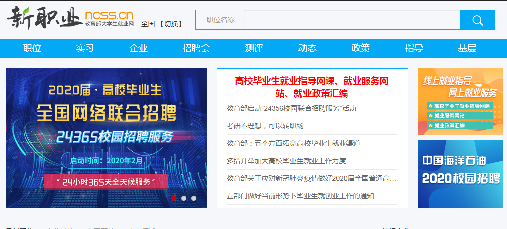 由教育部大学生就业网(新职业网)联合前程无忧、智联招聘、BOSS直聘、中华英才网、猎聘网五家社会招聘网站举办的“2020届高校毕业生全国联合网络招聘——24365校园招聘服务”活动正式推出。此次网络招聘抓紧关键环节,做好招应聘双方信息对称,将岗位信息输送至每位高校毕业生。