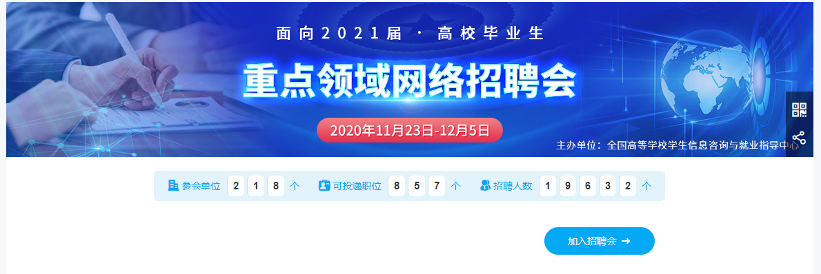 24365校园招聘服务:面向2021届高校毕业生重点领域网络招聘会