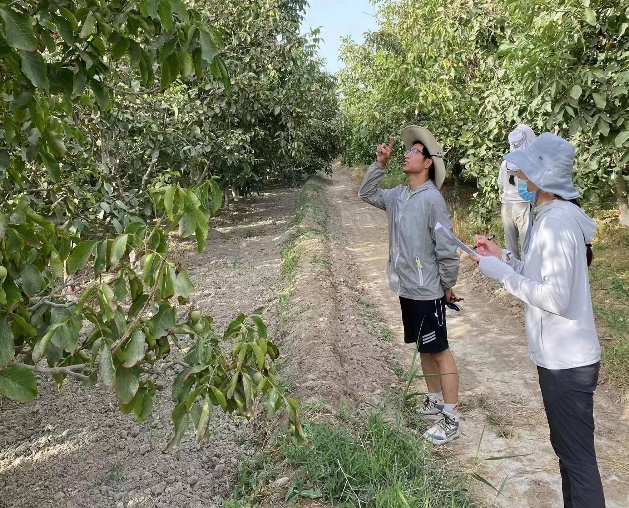 代热亚博依村是新疆阿克苏地区阿瓦提县曾经的贫困村,脱贫摘帽之后,部分脱贫户基本生活有了保障,但收入水平仍然不高。核桃为当地主栽林果树种之一,也是村民收入的主要来源,由于生产条件较差,管理手段落后,加之果农在核桃栽培管理中投入不足,普遍存在核桃产量低、品质差、病虫害严重发生等问题。为此,由学院副院长王世伟副教授、张翠芳副教授以及驻代热亚博依村工作队指导下,林学学科六名研究生组成了“六个核桃”乡村振兴志愿团队,前往代热亚博依村开启了一场与核桃相伴的“奇妙旅行”。