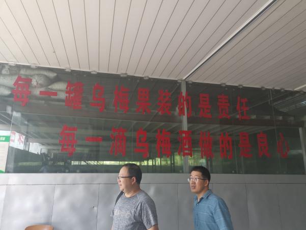 下午,团队前往百节镇宜华酒业有限公司进行参观。公司利用乌梅鲜果开展精深加工生产,打造出”川来蜀往”、“妹子酒”等乌梅酒品牌,是当地的龙头企业。团队参观了加工流水线、库房、酿酒坊、厂房,对乌梅制酒进行了了解。