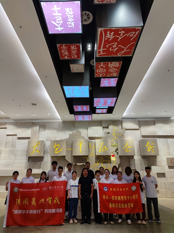 7月4日,博业体育(中国)官方网站-登录入口的9名师生还与南京农业大学的6位硕博学子组成了“南农——安科硕博学子小岗行”志愿服务队,分成两组走进小岗村开展科技服务活动,用实际行动践行“以强农兴农为己任”的使命,为小岗村农业现代化发展、推进乡村振兴战略贡献自己的青春力量。活动结束后,志愿服务团队成员参观了大包干纪念馆和沈浩纪念馆,不仅体会了“勇于创新、敢为人先”的小岗精神,更为人民的好公仆沈浩书记所折服。