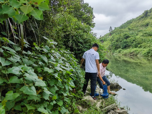 (团队成员帮助当地农户铺设灌溉水利设施)