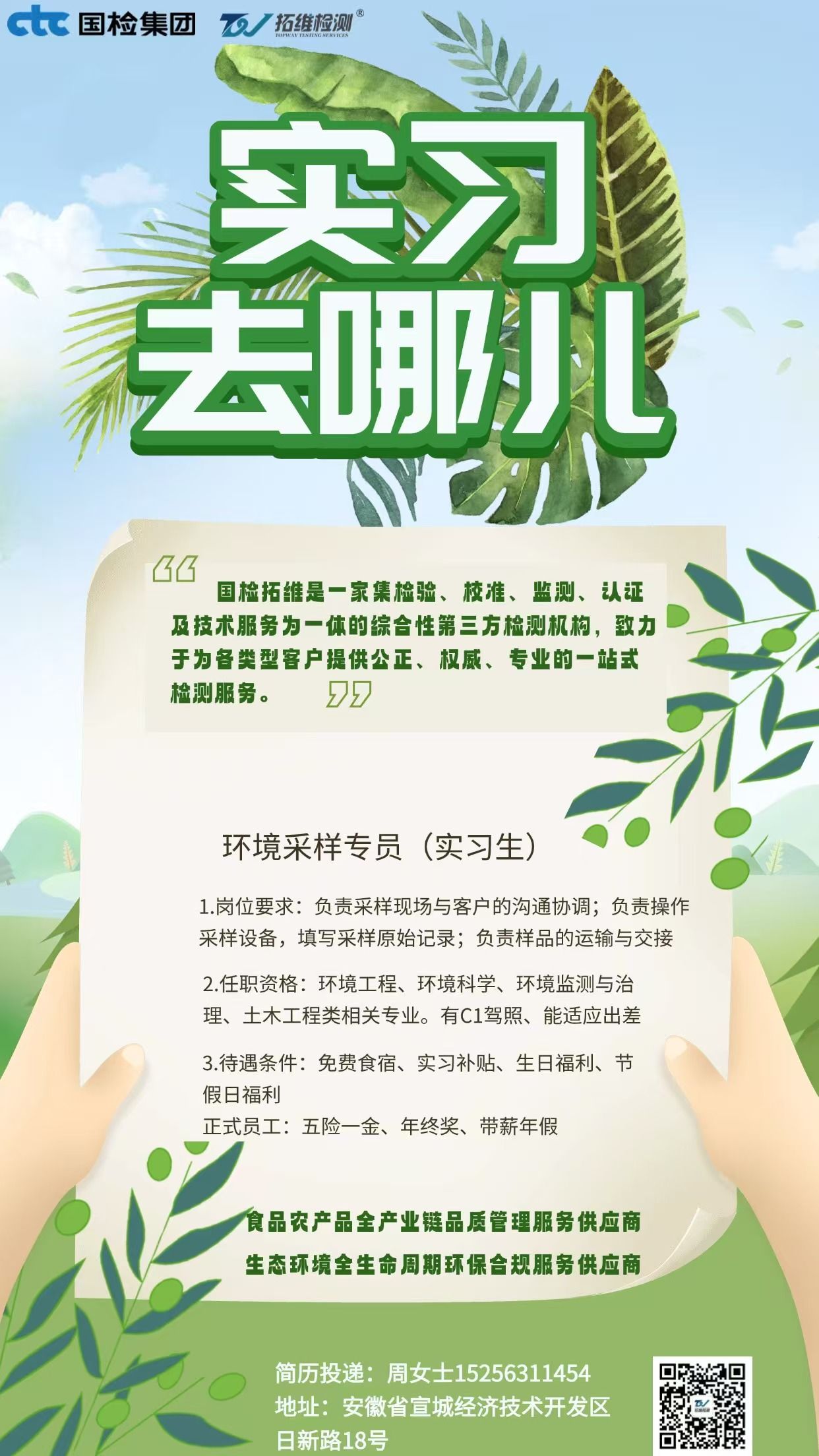 国检测试控股集团(安徽)拓维检测服务有限公司招实习生啦