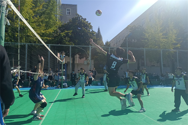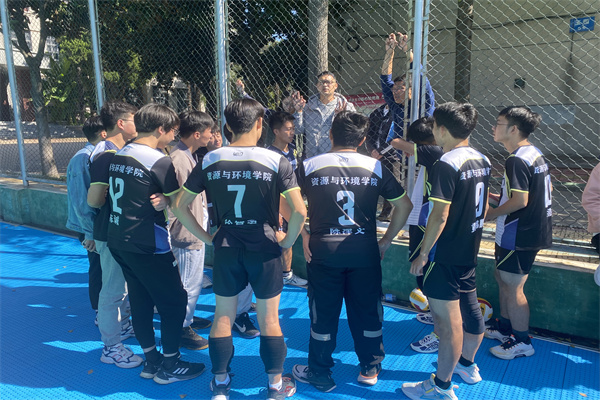 10月17日上午,资源与环境学院和生命与健康科学学院的排球赛在玉园排球场正式拉开战幕。党委副书记沈树周莅临现场观看比赛。