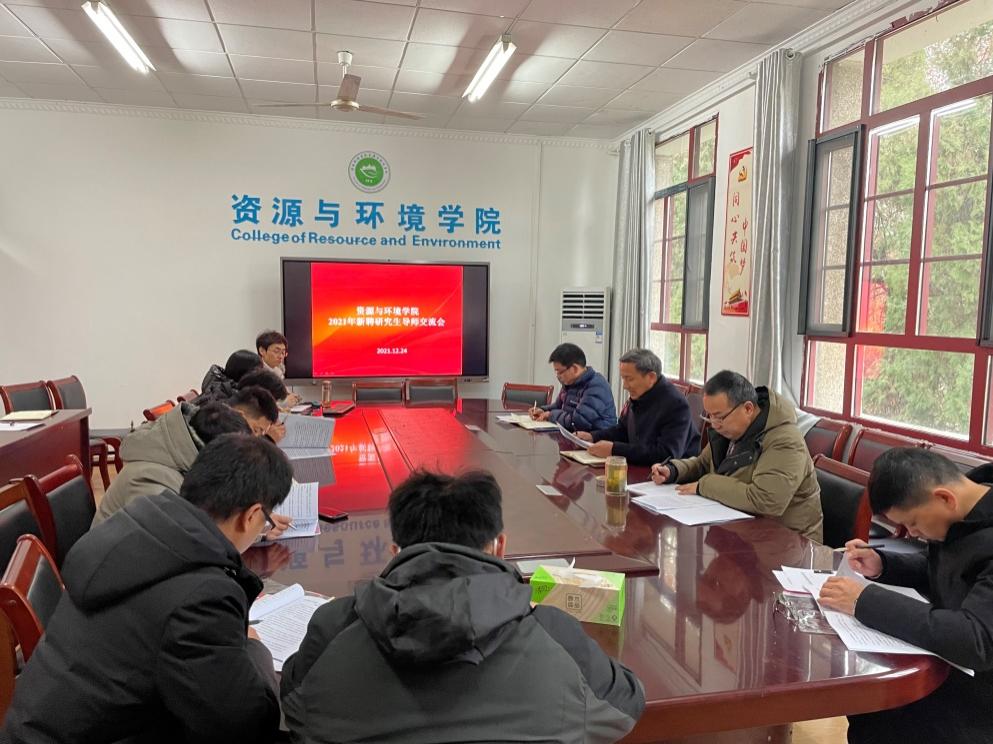为加强研究生导师队伍建设,提升新聘研究生导师指导水平,强化导师立德树人的职责与任务,切实保证研究生培养质量,资源与环境学院于12月24日上午在学院会议室召开资源利用与植物保护领域新聘硕士研究生导师座谈会。资源与环境学院党委书记李孟良、院长李孝良、副院长李飞跃及各位新聘导师参加了本次座谈会,会议由李飞跃主持。