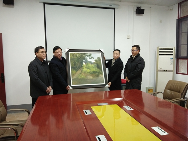 仪式上,汪肇安向母校捐赠布面油画《塅子人家》和现金伍万元整。油画由著名画家刘曦创作,具有较高的收藏价值。整个画面洋溢着浓郁的乡村气息,从绿树掩映着的农家小屋延伸出一条蜿蜒的小道,寓意着农家学子从农村到城市一路走来的道路虽然艰难,但坚持走下去就有希望,就一定能迎来光明的未来。